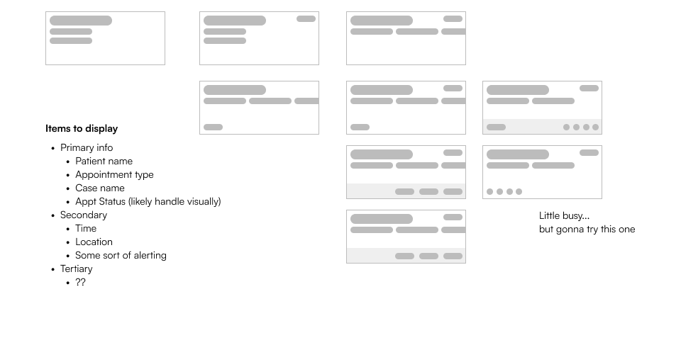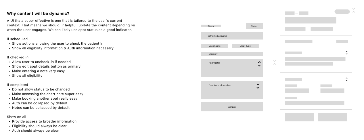 To empathize with our user base and truly understand who I was designing for, I spent some time on-site and talking with providers and staff who operate the front desk in their clinic. During my visit, I observed staff move through typical daily activities and discussed common challenges involved with running the front desk.