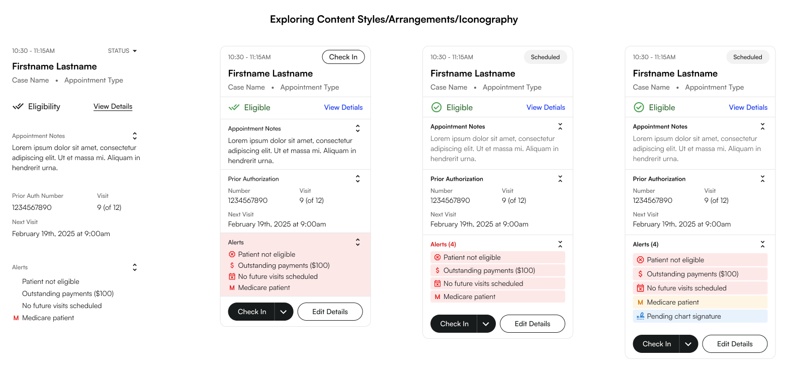 Right after launch, we learnt that a couple key pieces of patient information (such as email, phone, next scheduled visit) were missing from this pop-out window. We needed to add these so staff could easily contact patients when reaching out to confirm their appointments.