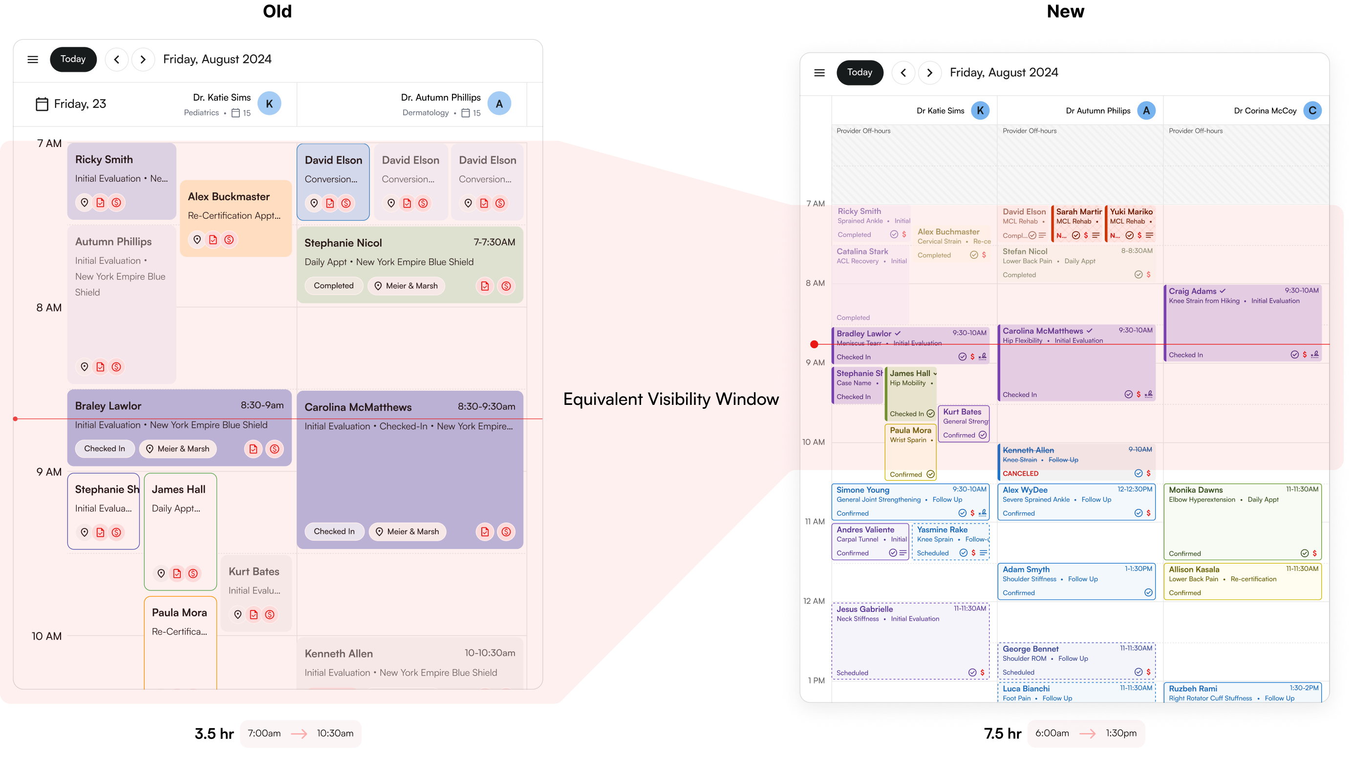 I wanted to capture first hand feedback on what using our current calendar was like, so I talked with various customers in admin/provider rolls and dug into why they were getting frustrated.